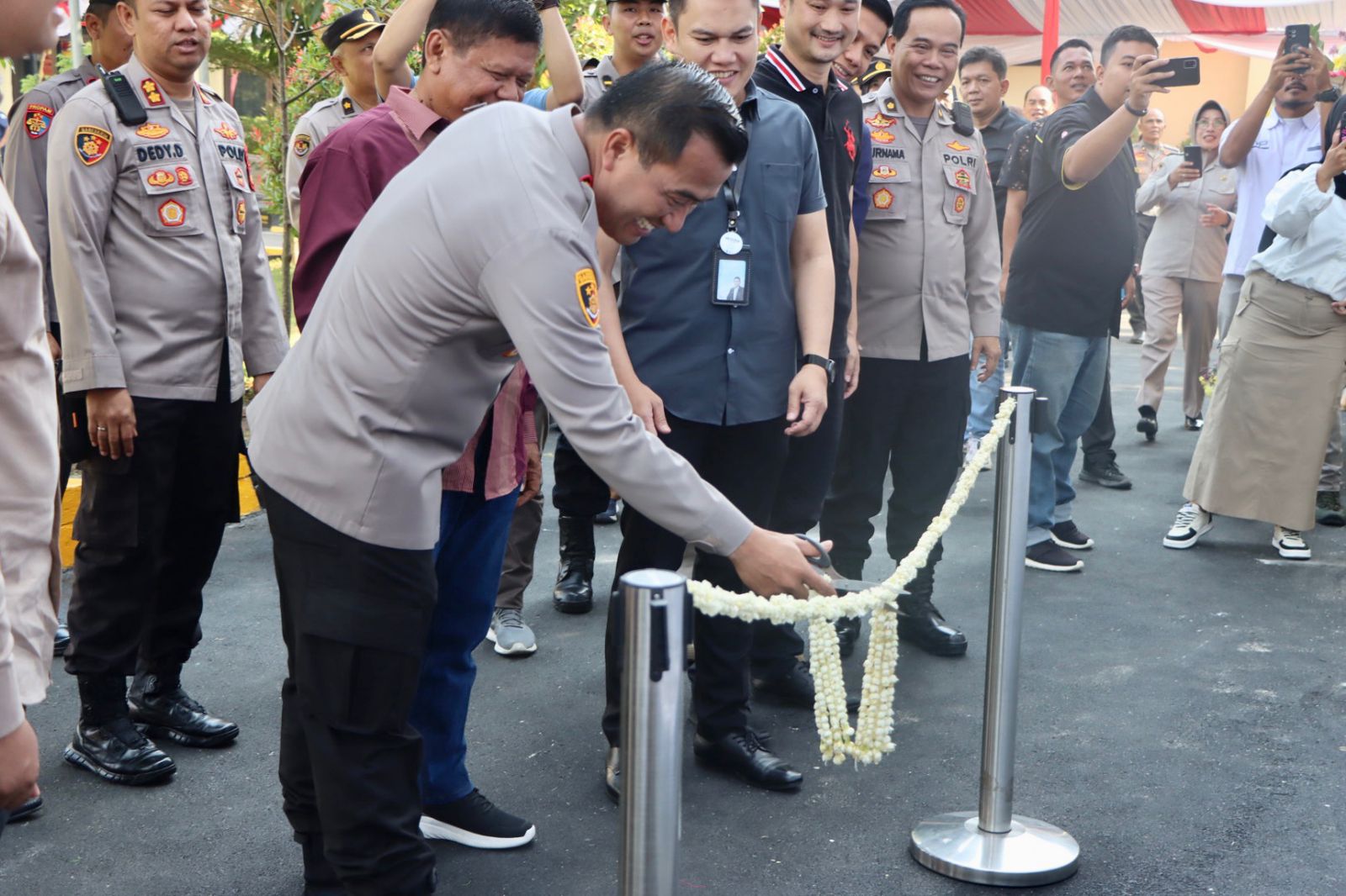 Dalam peresmian renovasi gedung propam diawali dengan pengguntingan pita dilanjutkan penandatanganan prasasti peresmian serta peninjauan sejumlah ruangan, Selasa (15/8/2023).