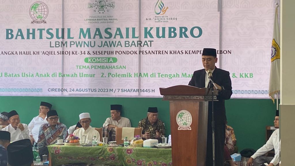 KAB.CIREBON, (ETNOLOGIMEDIA.COM)- Bahtsul Masail Kubro digelar LBM PWNU Jabar, bekerjasama dengan Panitia Haul KH Aqiel Siroj ke-34 dan Sesepuh Ponpes KHAS Kempek, di Masjid Al-Jadid Ponpes setempat, Kamis (24/8/2023).