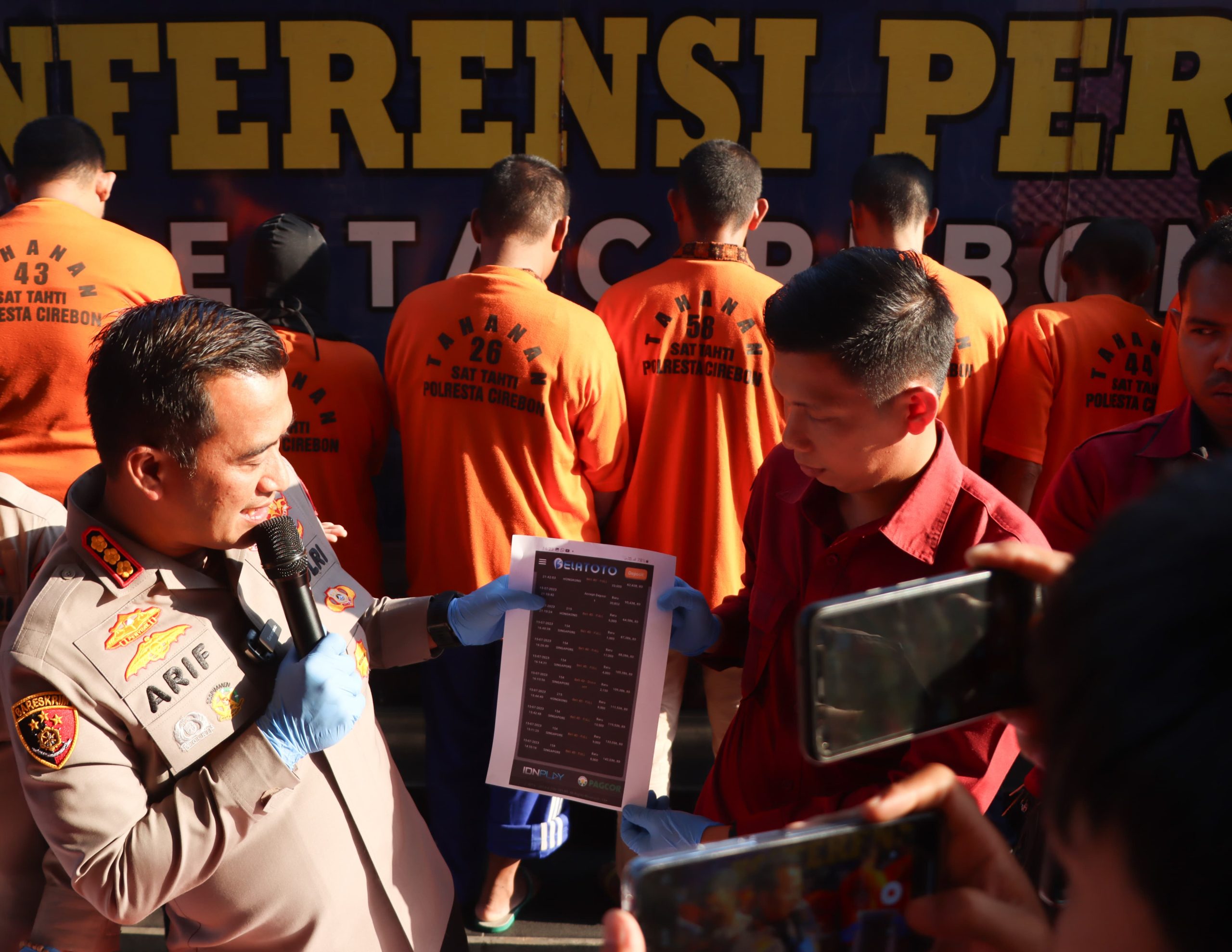 “Belasan tersangka ditangkap dari kasus berbeda yang berjumlah sembilan. Kasus itu terdiri dari enam kasus judi togel online, dua kasus pencurian dengan kekerasan (curas), dan satu kasus judi sabung ayam,” ujar Arif saat konferensi pers di Mapolresta Cirebon, Jumat (1/9/2023).