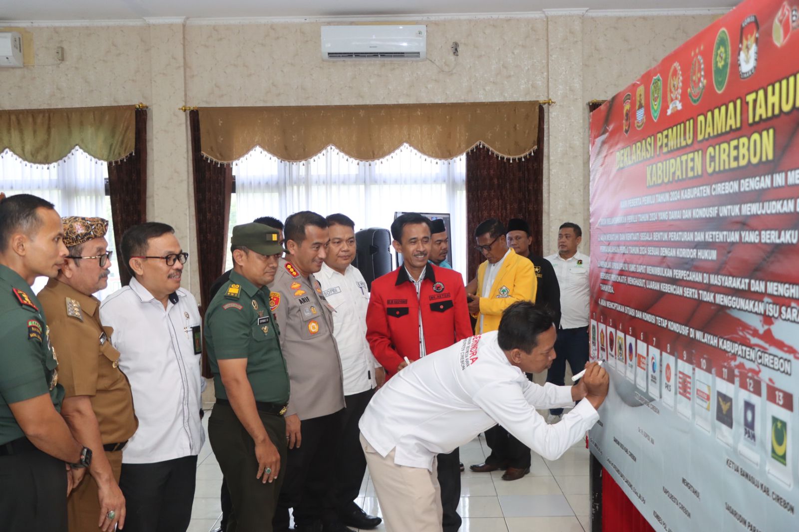 Dalam kegiatan tersebut, dihadiri juga unsur Forkopimda seperti Bupati Cirebon imron, Dandim 0620/Kab. Cirebon Letkol Inf Afriyadi Bayu Laksono, Ketua DPRD, M. Luthfi, Ketua Pengadilan Negeri Sumber, Achmad Ukayat, Kasi Intel Kejaksaan, Ivan Yoko, hingga Ketua/Pengurus 18 Parpol Peserta Pemilu 2024.