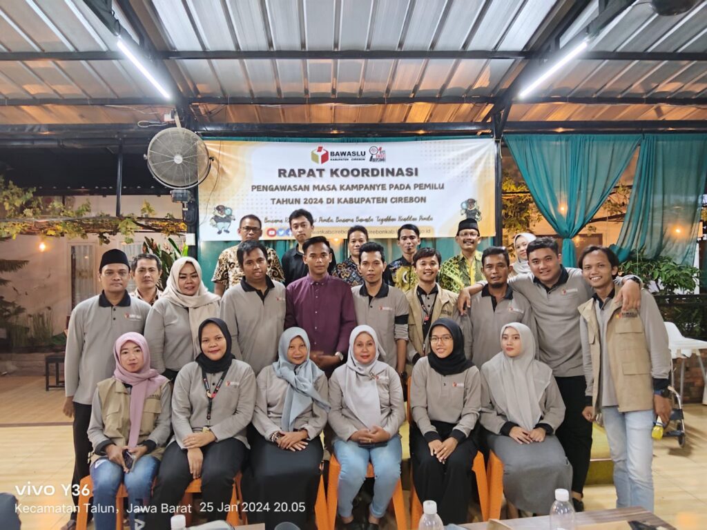 CIREBON, (ETNOLOGIMEDIA.COM)- Panitia Pengawas Pengawas Pemilu (Panwascam) Talun, Kabupaten Cirebon menggelar Rapat Koordinasi (Rakor) Pengawasan Kampanye Pemilu 2024, di RM Dapoer Cendana, Jl Cendana Raya Bumi Arumsari Desa Cirebon Girang, Kamis (25/1/2024).