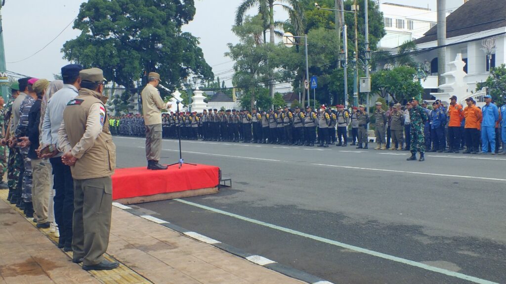 KOTA CIREBON, (ETNOLOGIMEDIA.COM) – Dalam rangka mensukseskan kegiatan Pemilu 2024 mendatang dengan aman dan damai, KPU Kota Cirebon menggelar kegiatan Apel Siaga Dalam Rangka Persiapan Pemilu Serentak Tahun 2024 yang dilaksanakan di depan Balaikota Cirebon Jl. Siliwangi Kota Cirebon, Sabtu (10/2/2024). Kegiatan tersebut diikuti sekitar 1.000 orang dari unsur TNI-Polri dan masyarakat.