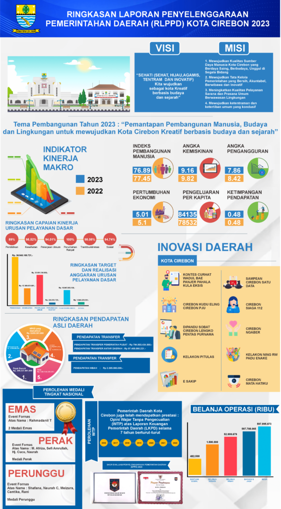 CIREBON, (ETNOLOGIMEDIA.COM)-Pemerintah Daerah (Pemda) Kota Cirebon merilis ringkasan Laporan Penyelenggaraan Pemerintah Daerah (RLPPD) sebagaimana amanat ketentuan Pasal 69 ayat (1) Undang-undang Nomor 24 Tahun 2014 tentang Pemerintahan Daerah mengenai kewajiban Kepala Daerah menyampaikan Laporan Penyelenggaraan Pemerintahan Daerah (LPPD) dan Laporan Keterangan Pertanggungjawaban (LKPJ).