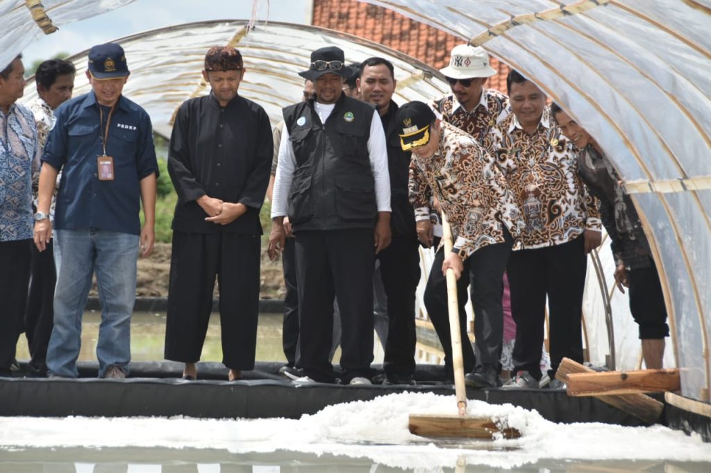 Dalam kunjungan tersebut, Wahyu mengapresiasi penerapan inovasi teknologi oleh petani garam lokal.