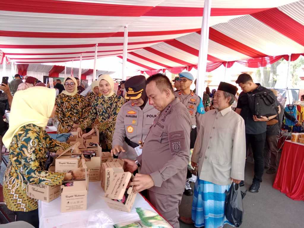 Selain menjual paket sembako, bazar juga diramaikan puluhan UMKM lokal yang menjajakan aneka produk.