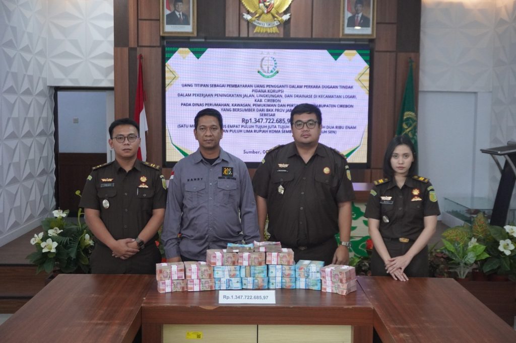 “Nilai uang titipan ini adalah sebagian dari total kerugian negara sebesar Rp2.694.084.271,46 berdasarkan perhitungan Inspektorat Daerah Provinsi Jawa Barat,” ujar Kepala Kejaksaan Negeri Kabupaten Cirebon, Yudhi Kurniawan melalui Kasi Intelijen, Randy Tumpal Pardede, dalam keterangan persnya, Kamis, (5/6/2025).