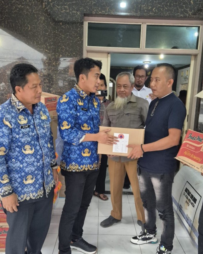 Penyaluran logistik ditujukan kepada warga di Desa Slangit, Kecamatan Klangenan, setelah hujan disertai angin kencang yang merusak puluhan rumah pada Jumat (14/11/2025) sore lalu.