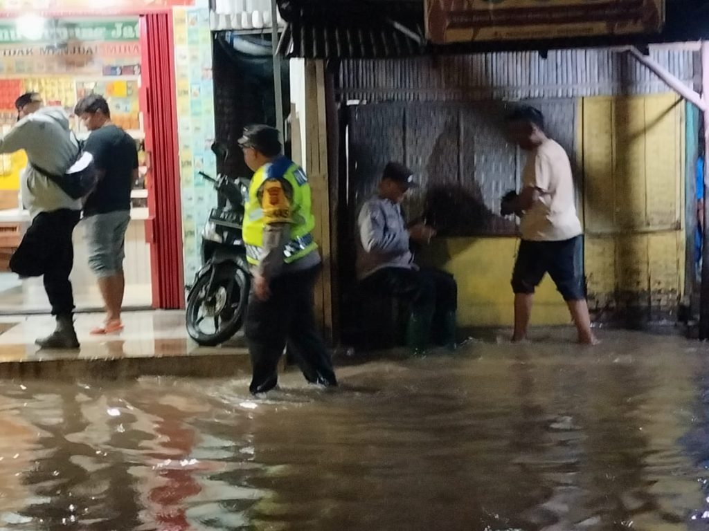 Personel Polres Cirebon Kota dan Polsek jajaran bergerak cepat mendatangi lokasi-lokasi yang dilaporkan terdampak genangan air, sekaligus melakukan pengecekan langsung bersama unsur BPBD Kabupaten Cirebon untuk memastikan situasi terkini di lapangan.