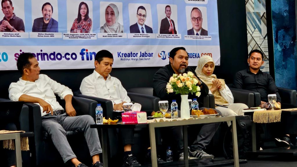 Diskusi dipandu oleh Prof. Dr. Taufiqurachman, A.Ks., Sos., M.Si, dengan menghadirkan sejumlah narasumber dari berbagai latar belakang, antara lain Prof. Dr. H. Yuddy Crisnandi, S.E., M.E (Ketua Dewan Pakar SMSI Pusat), Nuzula Anggerain (Direktur Ideologi, Kebangsaan, Politik, dan Demokrasi Kementerian PPN/Bappenas), Hersubeno Arief (praktisi media baru), Wahyu Dhyatmika (Ketua Umum AMSI), Ilona Juwita (Wakil Ketua Umum SMSI), Aiman Witjaksono (wartawan senior), serta Dr. Ariawan, S.AP., MH., MA (Koordinator Wartawan Parlemen).