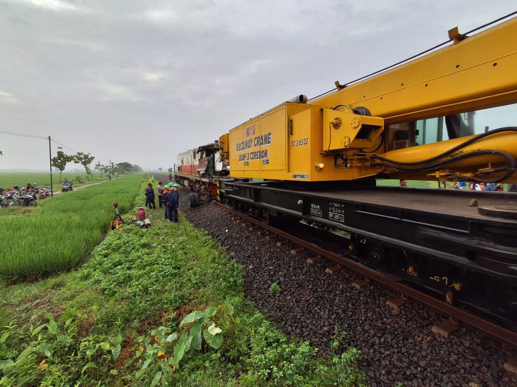 Saat ini, petugas KAI masih melakukan proses evakuasi lokomotif yang terdampak agar jalur hilir dapat segera difungsikan kembali.
