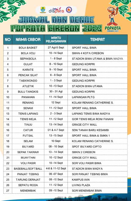 Pembukaan Popkota Cirebon 2023, Eti Herawati: Pemda Kota Cirebon Komitmen Dukung Pengembangan Olahraga 09 September 2023 | 15:35