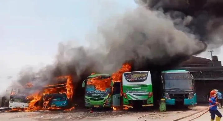 “Laporan awal lima unit bus terbakar. Tiga hangus hingga bagian dalam dan dua lainnya bagian luar dengan posisi sejajar dari titik kendaraan konsleting pemicu munculnya api. Tapi kami masih mendata jumlah pasti bus yang terbakar, dan tetap menempatkan personil di lokasi agar tidak meluas dan terulang,” ungkapnya.***
