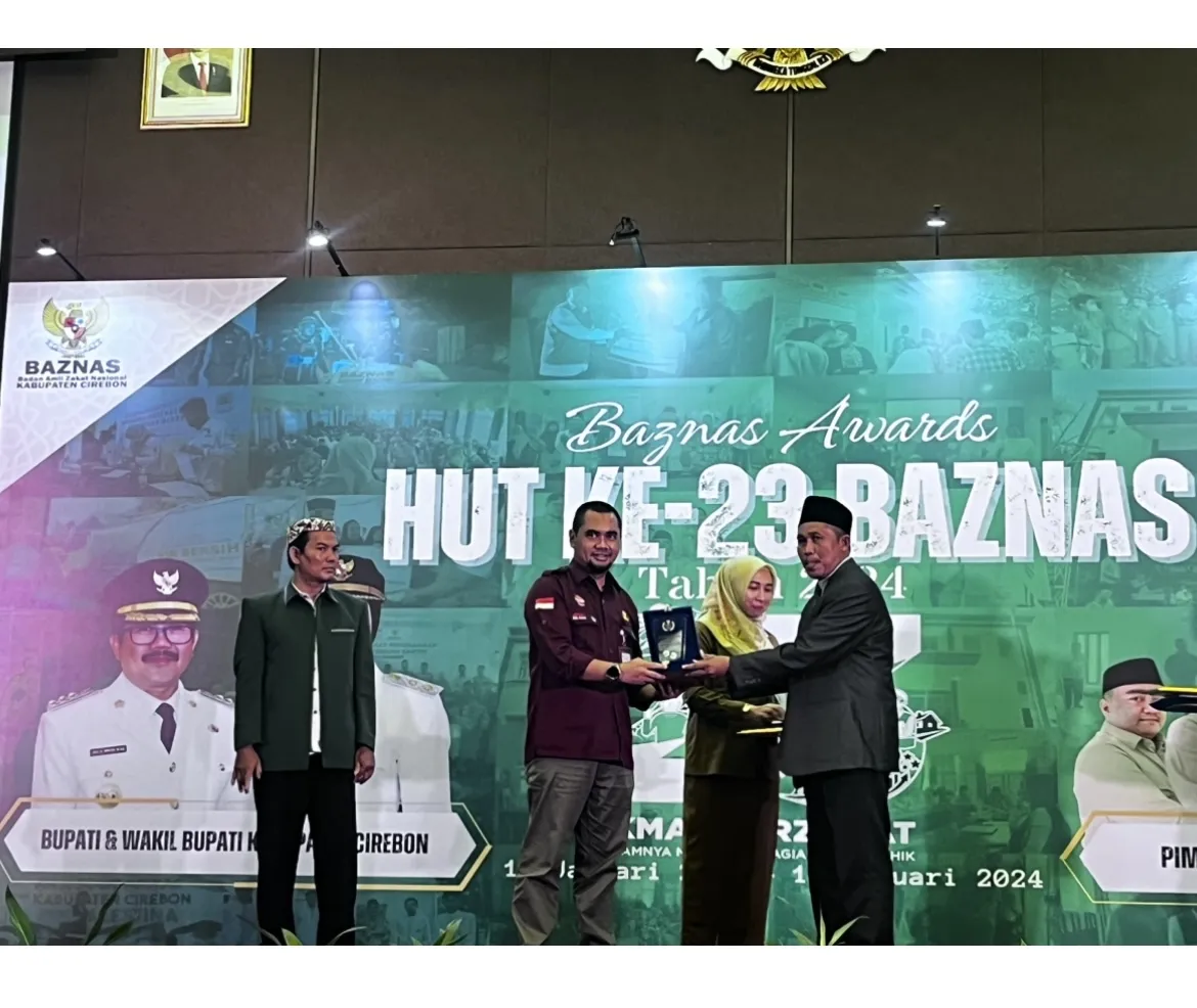 Pada momentum perayaan Baznas ke-23 ini, Baznas Kabupaten Cirebon juga memberikan apreasiasi kepada para penggerak zakat dengan diberikannya Baznas Awards, di salah satu hotel di Cirebon, Selasa (5/3/2024).