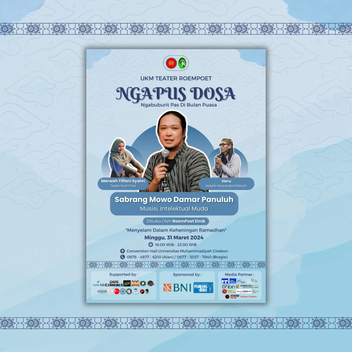 Mereka berinisiatif mengadakan sebuah acara unik dan inspiratif bertajuk Ngaji Budaya Ramadan dengan tema “Ngapus Dosa atau Ngabuburit Pas di Bulan Puasa”.